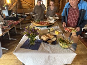 På fredagen kjører vi korgefest. Alle tar med en rett eller to, og setter i felles buffet. Vi oppretter et arrangement på FB, så legger dere inn i kommentarfeltet der hva dere tar med.