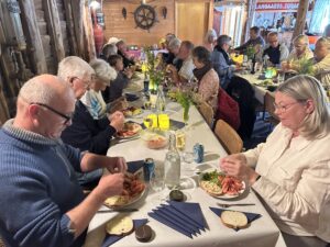 Fredagen er ankomst og felles bespisning av medbragt i lokalet på Holmen. Her sørger klubben for at det er litt kaffe, søtt og salt på bordet etter vi har spist.